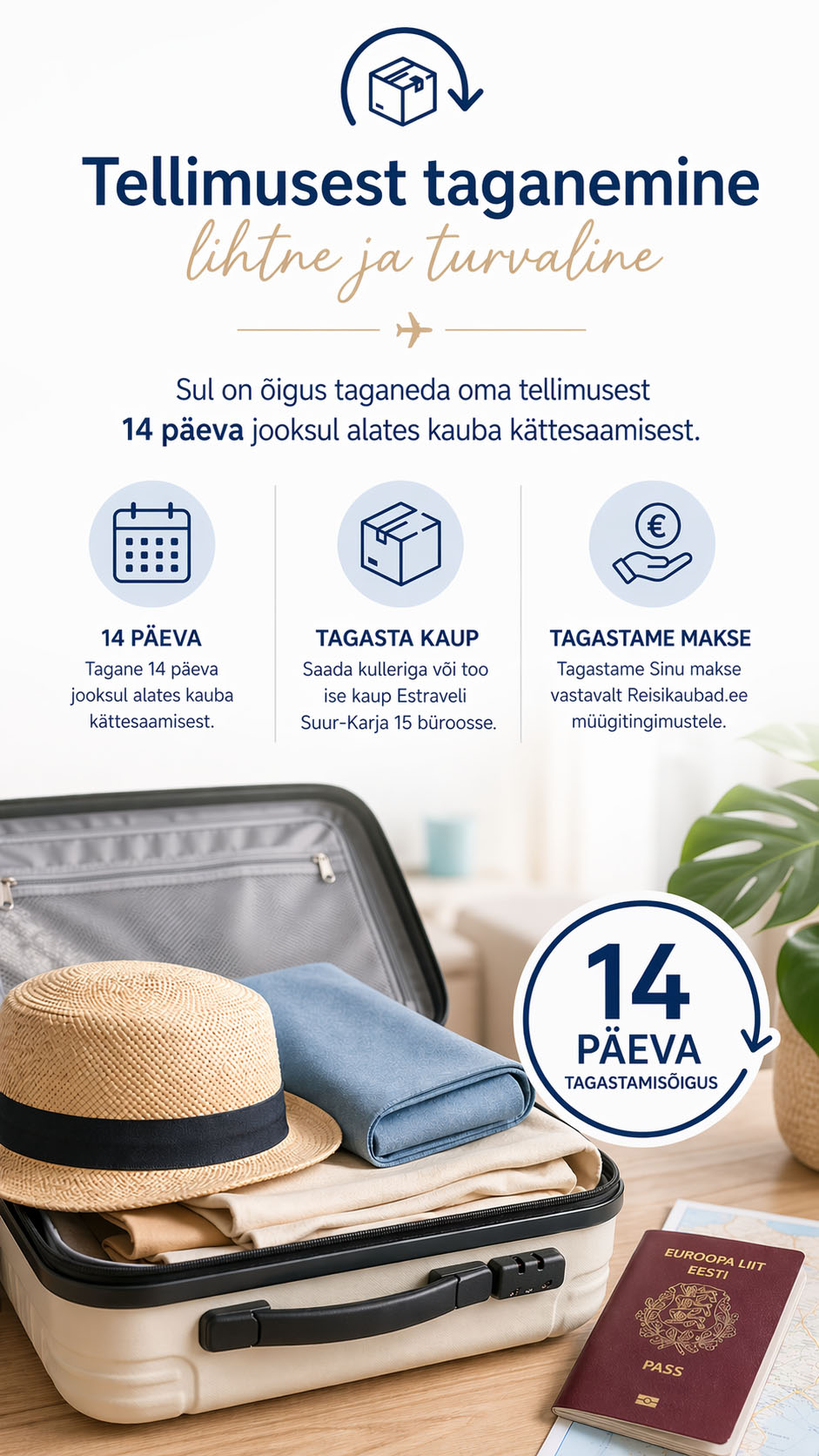 Sellel leheküljel saad taganeda oma Reisikaubad.ee e-poes tehtud tellimusest ja tagastada alljärgneva(d) toote(d):
